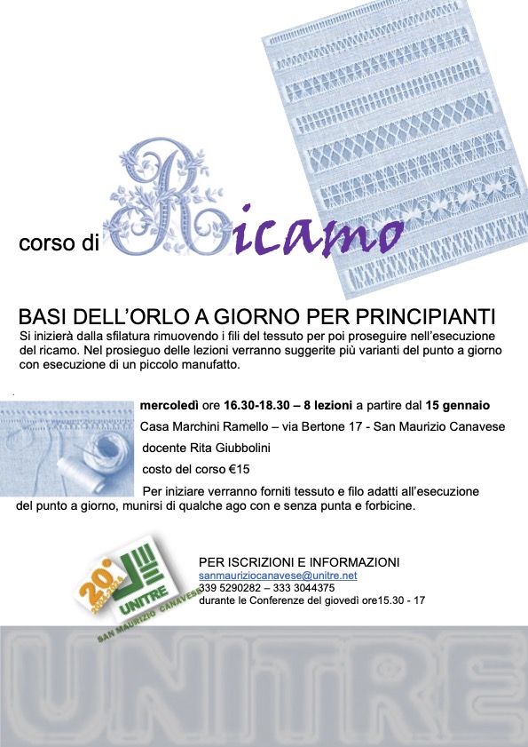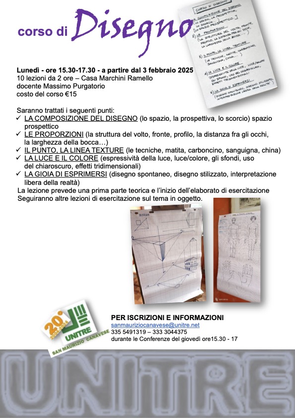 Anche i corsi si svolgeranno presso Casa Marchini-Ramello in via Bertone, 17 a San Maurizio Canavese.